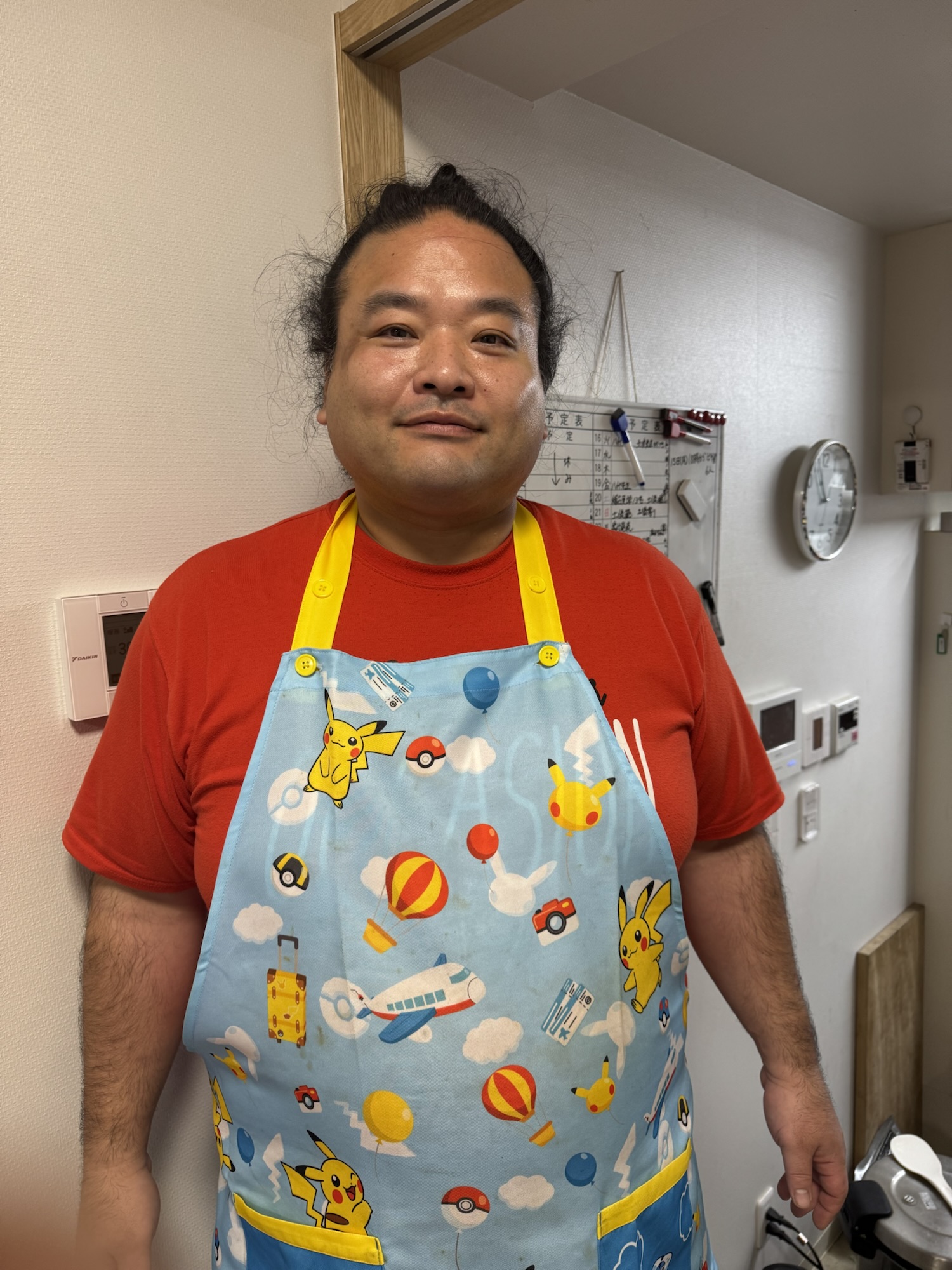 ポケットモンスターのエプロンは、移動中の飛行機内ショッピングで思わずポチッとしたものだとか。